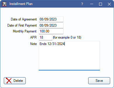 APR: The annual percentage rate (APR). When using the Finance Charge tool for an account that has an Installment Plan set up for any family member, this APR is used instead of the APR set in Billing/Finance Charges.