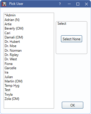 - Select a user from the list. Click Select None to unassign verifications instead.