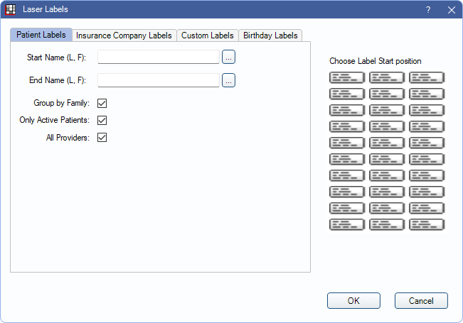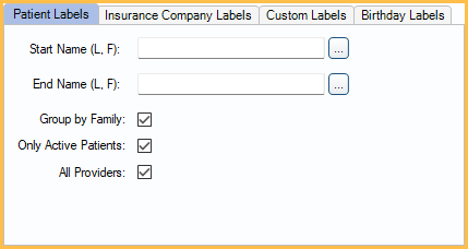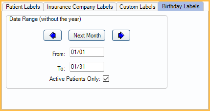 Use the Birthday Labels tab to create labels for patients with a birthday in the selected date range.