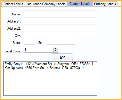 Use the Insurance Company Labels tab to print labels for insurance companies.