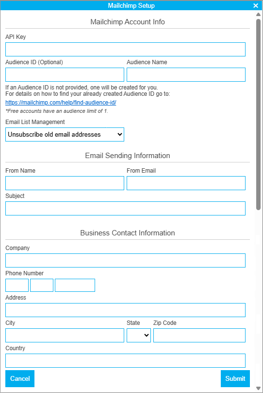 - Audience Name: Enter the Audience Name, as entered in Mailchimp.