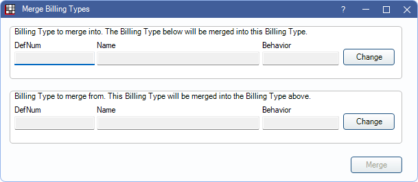 The Merge Billing Types tool can be used to merge duplicate billing types.