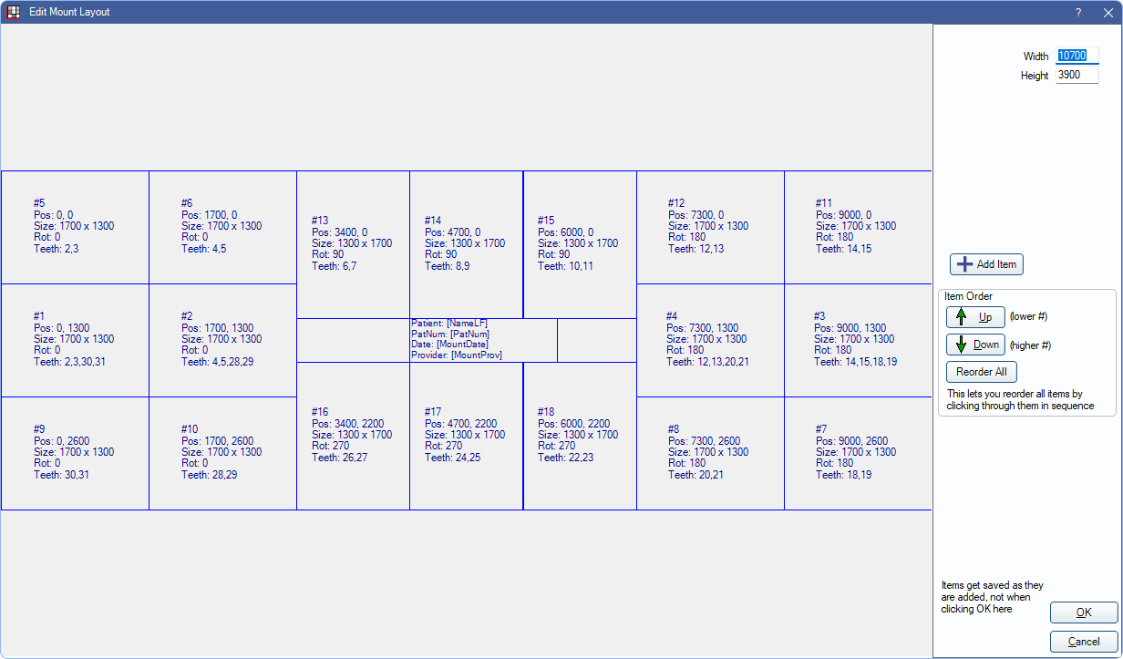 Click and drag a mount item to move. For additional details on editing a mount, see Mount Definitions, Edit Mount Def. Not all mount def options are available when an existing mount layout.