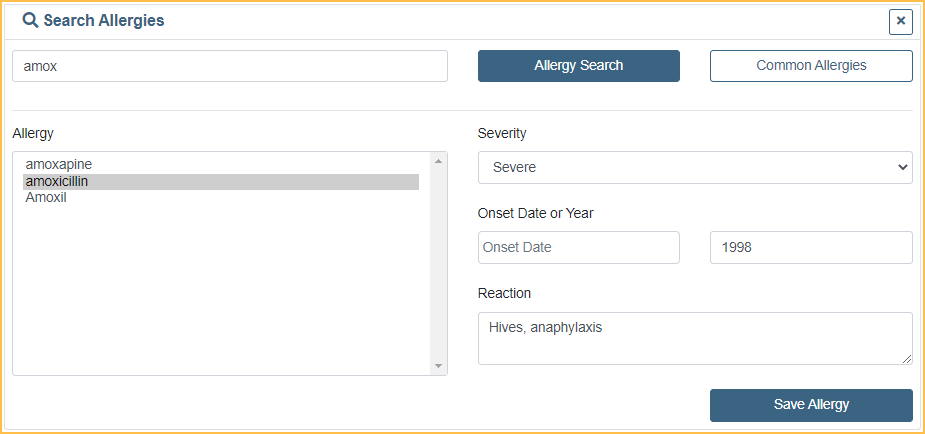 Ensora eRx uses the allergies entered here when checking for Drug-Allergy Interaction Checks. Allergies entered in Open Dental are not passed to Ensora eRx. Allergies must be added to Ensora eRx manually.