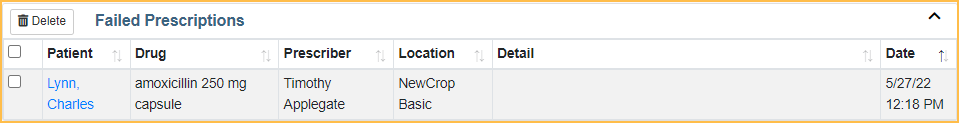 - Scroll to the bottom. In the Prescription History section, any Failure is noted in the status column.