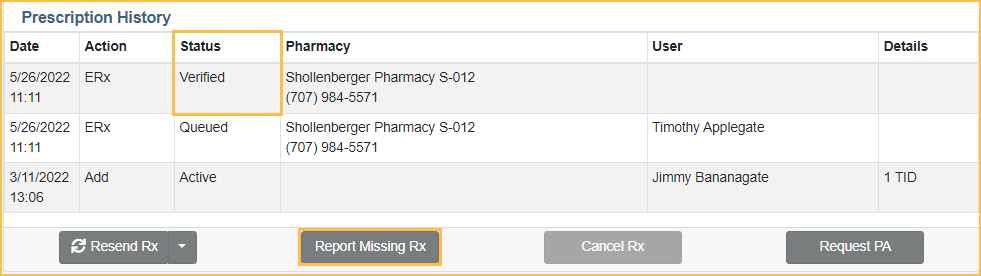 - If the status is marked Verified, the prescription may be missing. Proceed to steps to Report a Missing Prescription.
