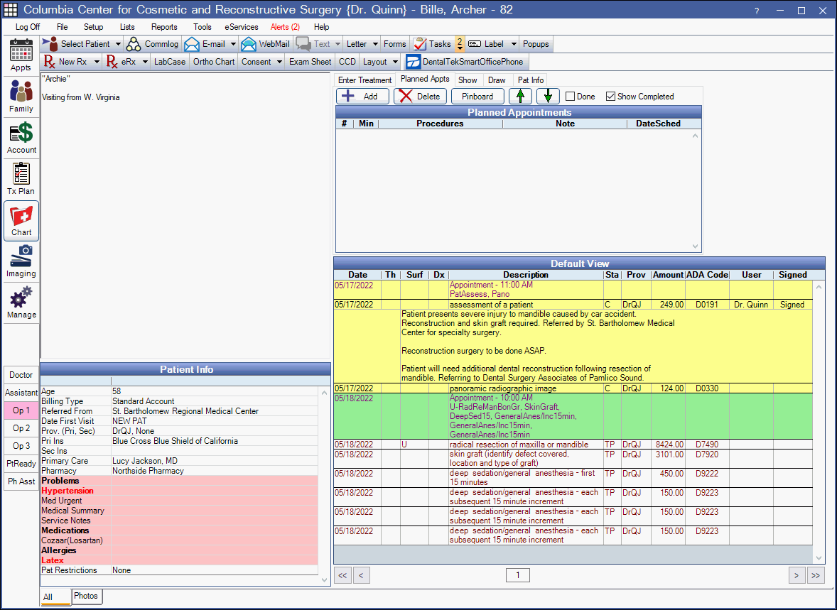 Above is an example of the non-dental interface in the Chart module.