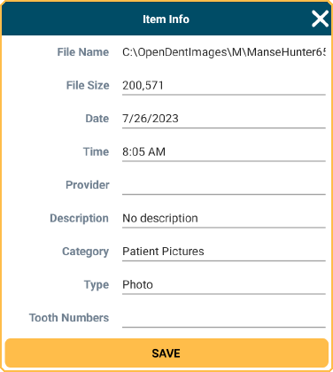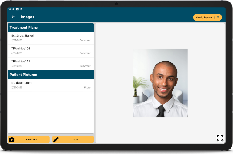 Only Image Categories in the Imaging Module that contain files display. Tap a file to view it. Pull down on the images list to refresh it.