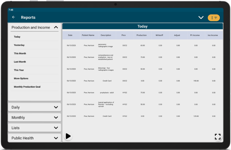 Reports available in ODTouch match the Standard Reports found in Open Dental.