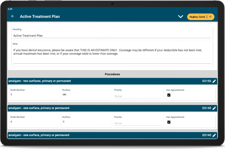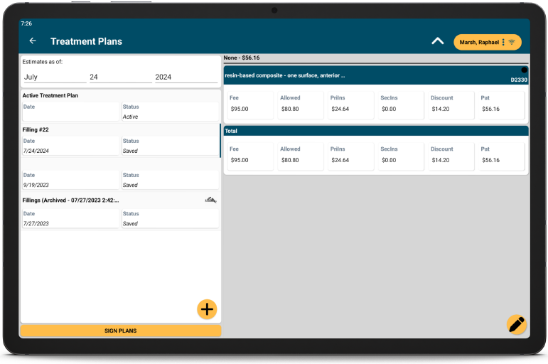 Create, review, and have patients sign Treatment Plans from the ODTouch device.
