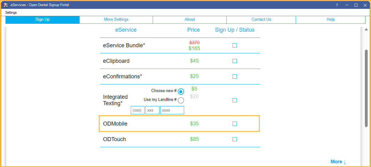 In eServices Setup, click Signup. In the Basics tab, enable ODMobile.