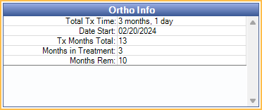 The Ortho Info grid displays patient Auto Ortho information. Only shows if the preference, Show Auto Ortho information in the ortho chart is enabled.