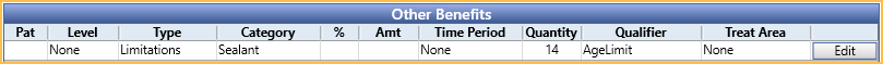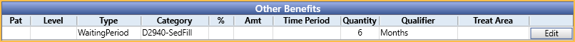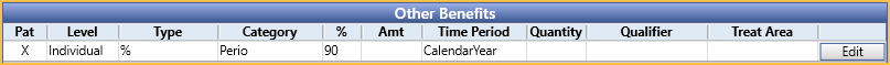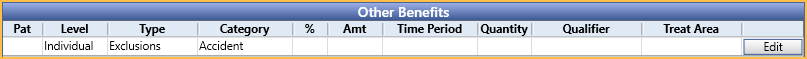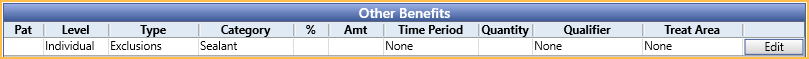 Some states or municipalities allow uncovered procedures to be charged at the full UCR fee with no writeoffs. Create an Other Benefit to define which procedures or categories are subject to this Exclusion.