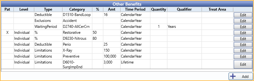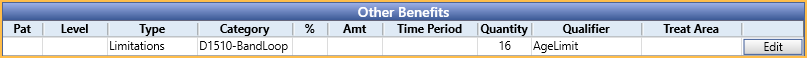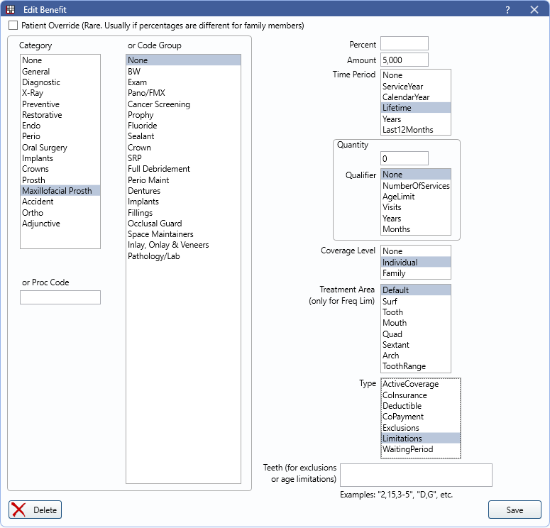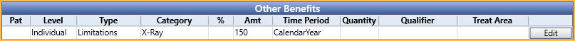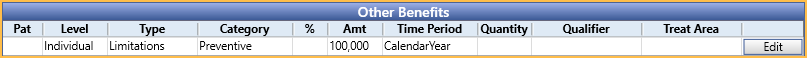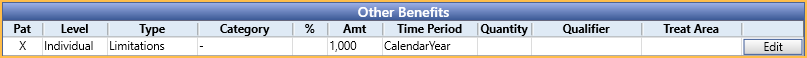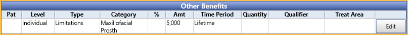 For plans that have a lifetime maximum for certain codes or categories, create an Other Benefit to define the applicable code or category, and the amount.