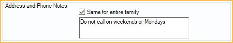 - Same for entire family: If checked, when information in this area is changed for one family member, it is updated for all family members. We recommend checking notes for other family members before applying to entire family as to not accidentally overwrite another note.