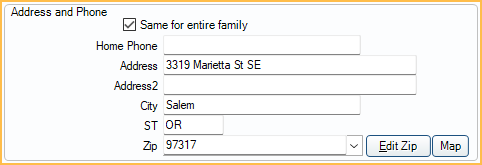 - Same for entire family: If checked, when information in this area is changed for one family member, it is updated for all family members.