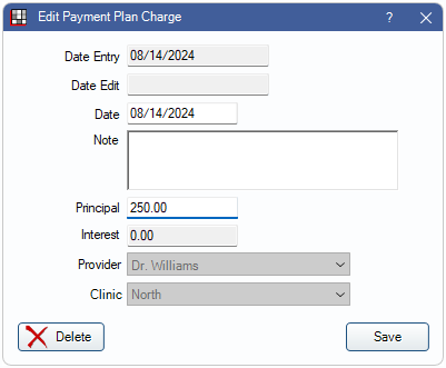 Clinic: Use the dropdown to change the clinic assigned to the payment plan.