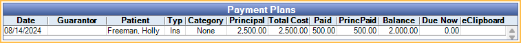 If the Insurance Payment Plan was created prior to receiving the first insurance payment, payments are automatically attached to the Insurance Payment Plan. If the payment plan is created after receiving insurance payments, users must manually mark insurance payments as attached to the payment plan. See Attaching Payments to an Insurance Payment Plan below for more information.