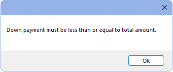 What do I do when I get a warning that a Down Payment must be less than or equal to the total amount?