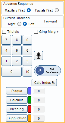 Current Direction: The direction Advance Sequence is currently auto advancing. This updates automatically when the perio chart advances to a new section, but can be toggled in each section to manually change the direction. Text indicates if the direction is going Forward or Reverse.