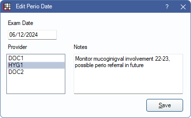 Only users with the Perio Chart Edit Permission can make changes to measurements on existing exams or create new exams.