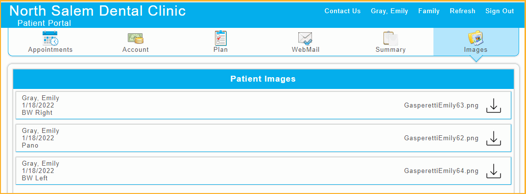 In the Images tab, patients can view PDFs and image files stored in Imaging Module folders shared to the Patient Portal.