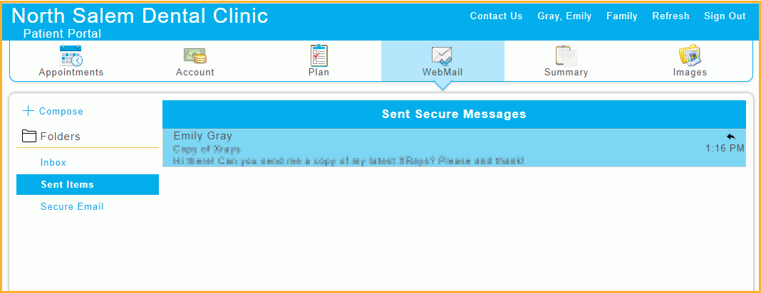 View and send private WebMail or Secure Email messages (between the provider and patient).