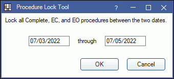 To lock all procedures completed in a date range, enter the date range in the Procedure Lock Tool window and click OK.