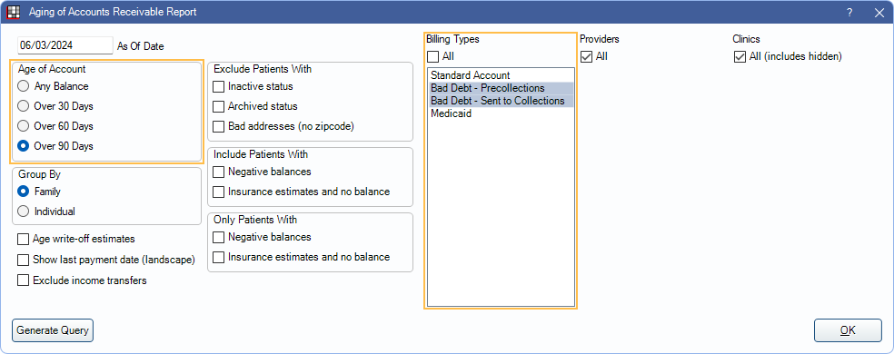 - Over 90 Days: Include all patients with balances that are over 90 days due.