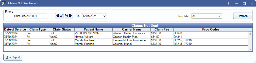 Run the Claims Not Sent Report to find claims that still need to be sent to insurance.