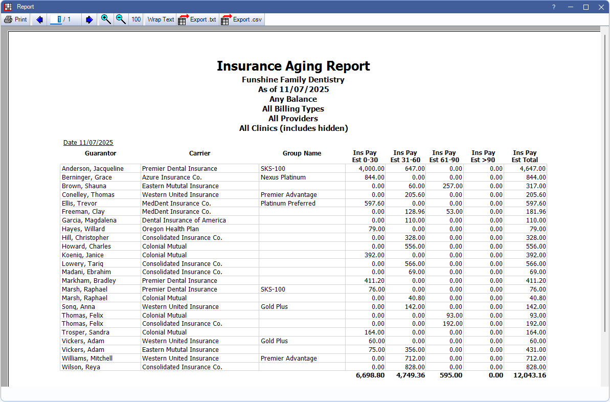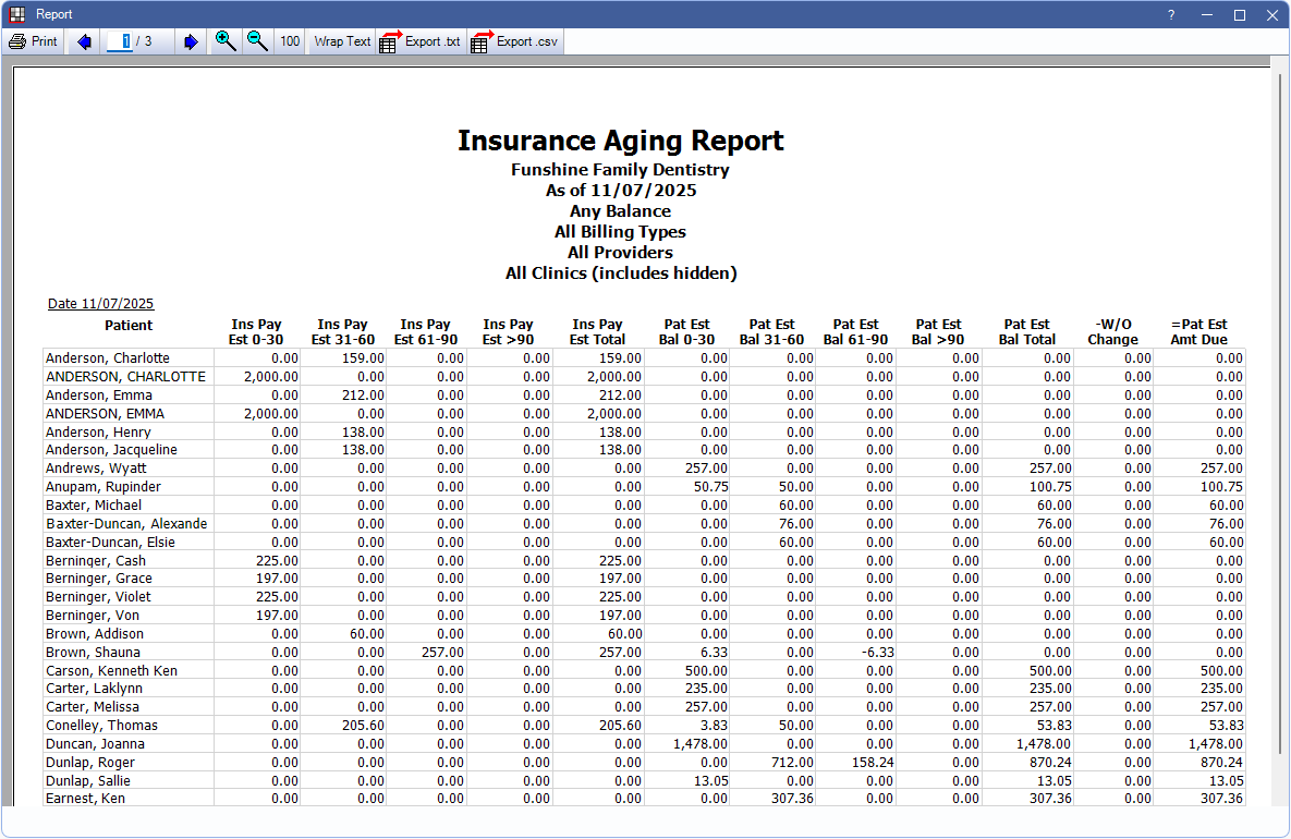 Offices that want to ensure they are getting paid by insurance companies and want to follow up on older claims should use the Outstanding Insurance Claims Report instead.