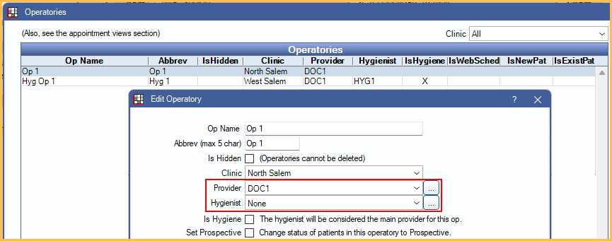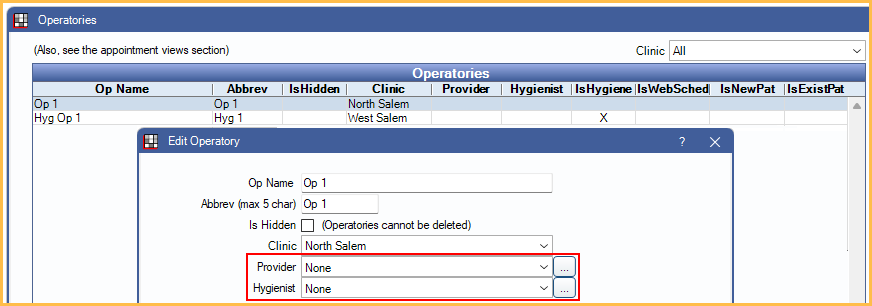 Operatories: Do not assign providers to operatories. Leave each provider as None.