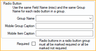- For Mobile Group Caption, enter a common name that will be used for all radio buttons in this group. This is what will display in mobile layout and can be the same as the Group Name.