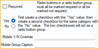 Mobile Y/N Override: Allows the user to change the value from yes or no to a custom value.