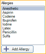 Add Allergy: Click to add a new allergy to the Allergy Master List.