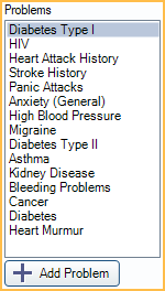 Only displays when allergies or problems are selected on Medical History sheets.