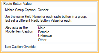 - Select the next radio button value. (the Mobile Group Caption will automatically carry over from the previous button.)