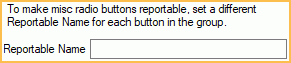 Reportable Name: Enter an identifying name for this misc checkbox/radio button.