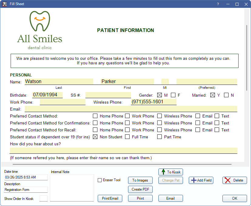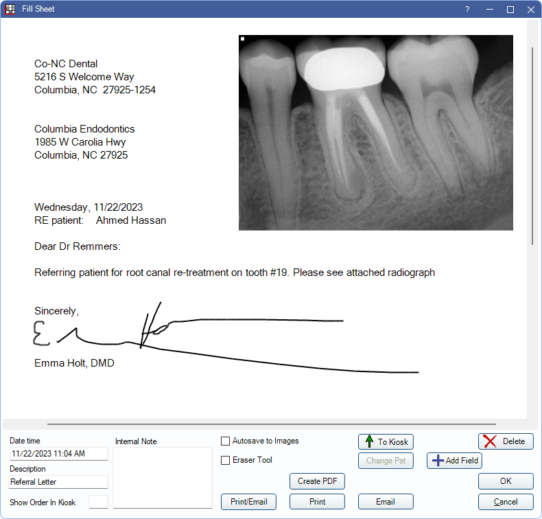 - Create PDF: Click to save the form as a PDF. Opens in PDF viewer to save outside of Open Dental.