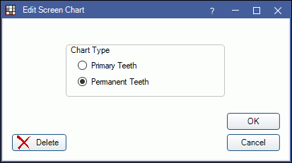 Screen Charts are Sheet Field Types that can be added when using the Screening Layout. There are two tooth charts available. Each chart shows posterior teeth and can be set to show permanent or primary teeth.
