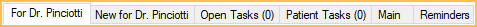 Open Tasks: Keep track of Tasks that have an object type of Patient and are From the currently logged-on user. This tab is only visible if Show open Tasks for user is checked in Tasks Preferences.