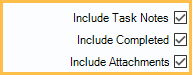 Text: Search for tasks by filtering keywords or phrases. Searches the Task Description (i.e., contents). If Include Task Notes is checked, includes task notes. If Include Attachments also searches Attachment Descriptions and Text.