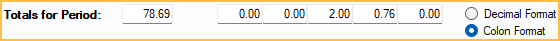 Decimal / Colon Format: Toggle how the Totals for Period are displayed. If Use decimal format rather then colon format is enabled in Time Card Setup, this defaults to display Colon Format.