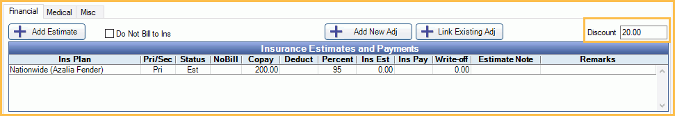 Note: Discounts are calculated using the procedure fee. Applying a new discount will replace any existing discount.