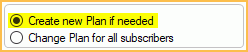 To create a new plan, ensure the radio button above is selected, and at least one of the following field values must change. This is useful when a plan changes for a single subscriber, but not all other subscribers on the plan. Only plans with more than one subscriber are changed.