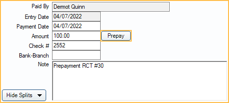 See How to Enter Prepayments for detailed instructions on taking patient payments.