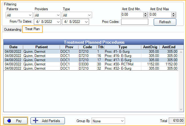 Hidden paysplits will be created for each TP procedure selected and assigned the Default treatment planned procedure unearned type set in Allocations Setup.