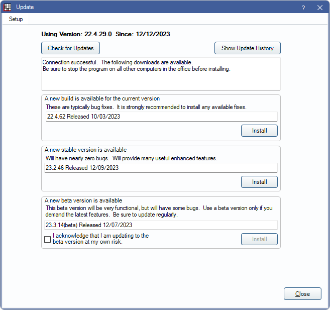- Replication users, see Replication: Update Open Dental Version for update instructions.