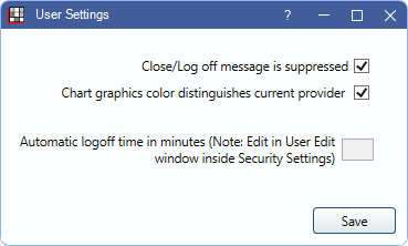 Determine user-specific settings when logging off or viewing chart graphics.