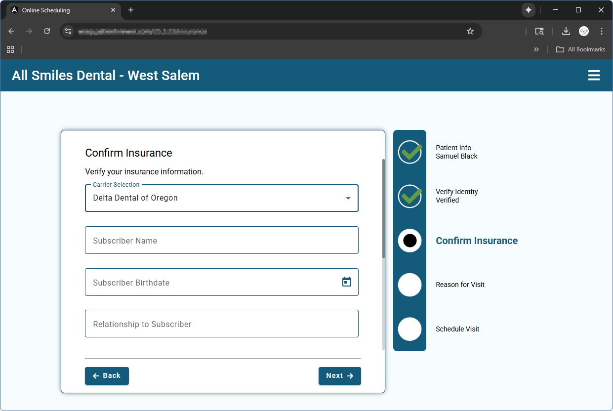 - Entered insurance information is added as a note to the appointment in Open Dental.